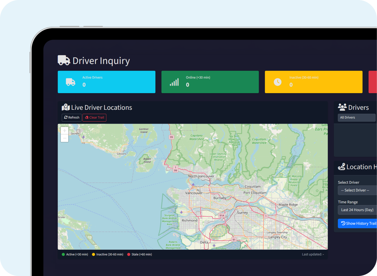 No signal? No problem. Drivers can complete jobs offline, and data syncs automatically when they reconnect.